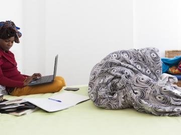 Quand je lui demande comment la littérature est venue s’insinuer dans sa vie, je comprends que les histoires permettaient pour lui de border l’espace de sa chambre d’enfant, entre les murs desquels les journées semblaient souvent trop longues. Il vivait alors à Bohicon, ville de taille moyenne située au Nord de la capitale, où il est né et a passé ses vingt premières années. Sa mère, très protectrice, le laissait peu sortir. Souvent partie à l’étranger pour le travail, à son retour elle lui ramenait des livres de ses voyages. Seul dans cette chambre, la lecture était alors cette fenêtre vers le monde extérieur. La possibilité, peut-être aussi, de rejoindre un peu sa mère aux endroits où elle s’absentait ?