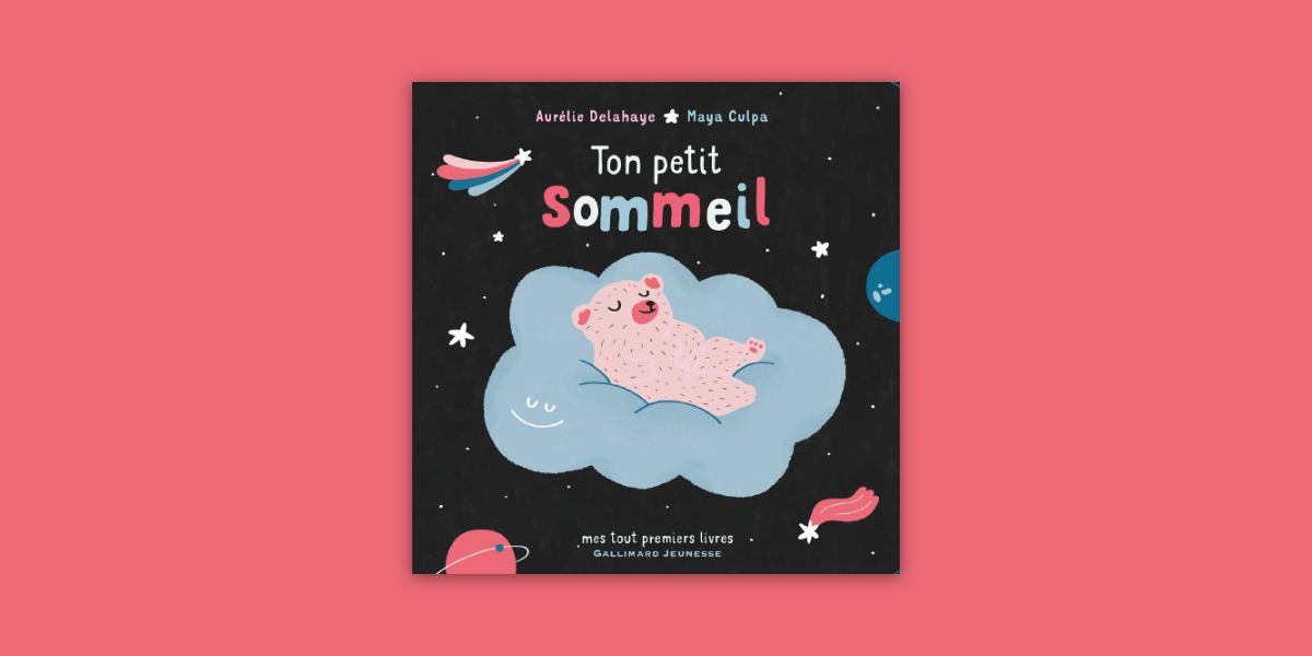 À travers "Ta petite chanson", le duo autrice-illustratrice dépeint avec humour et tendresse l’histoire d’un petit crabe orange (un brin pressant !) qui chantonne de plus en plus fort pour appeler son parent qui accourt sans cesse et qui tente de jongler, malgré la fatigue, entre ses propres besoins et ceux de son bébé qui n’attend pas ! Aurélie Delahaye et Maya Culpa réussissent à saisir et à représenter la "journée type" rythmée par les besoins du tout-petit avec les difficultés que ces moments peuvent comporter pour les parents. Dans le second livre, un ourson rose fluo cherche quant à lui le sommeil. Représenté sous une forme de nuage moelleux, son "petit sommeil" est parti dans la voûte céleste où des astres étincelants de couleurs voguent dans les profondeurs d’un ciel charbonneux. Le visuel dévoile un beau contraste entre le noir et les couleurs éclatantes. D’abord bercé aux creux de ses mains, le bébé ne s’endormira que lorsque son parent aura rattrapé son petit sommeil au lasso.